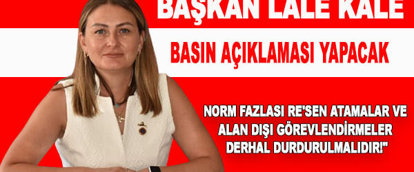 BAŞKAN LALE KALE “NORM FAZLASI RE’SEN ATAMALAR VE ALAN DIŞI GÖREVLENDİRMELER DERHAL DURDURULMALIDIR!”