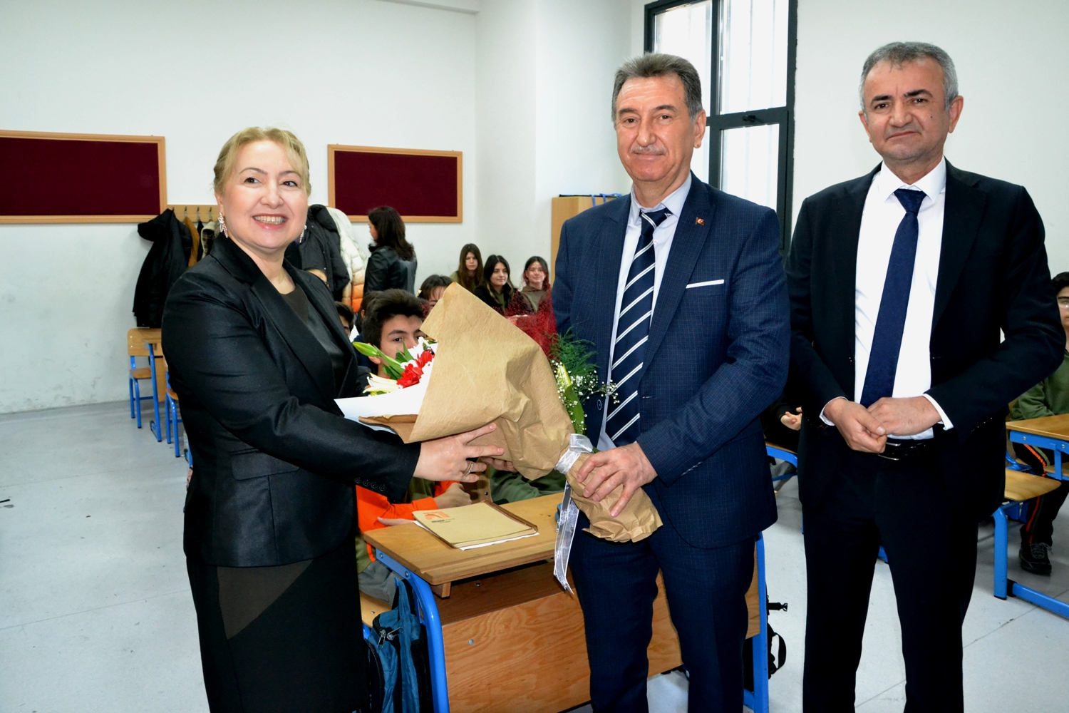 Şehzadeler İlçe Milli Eğitim Müdürü Metin Gençay, Merkezefendi Başhekimi Uzm. Dr. Fatma Neslim Yağlı’ya verdiği bilgilerden dolayı teşekkür etti, çiçek takdim etti.