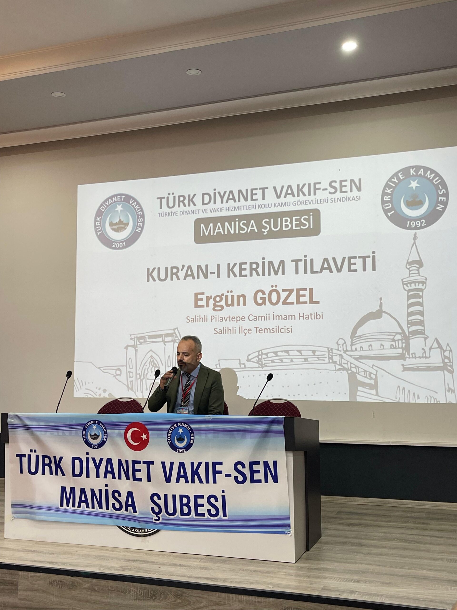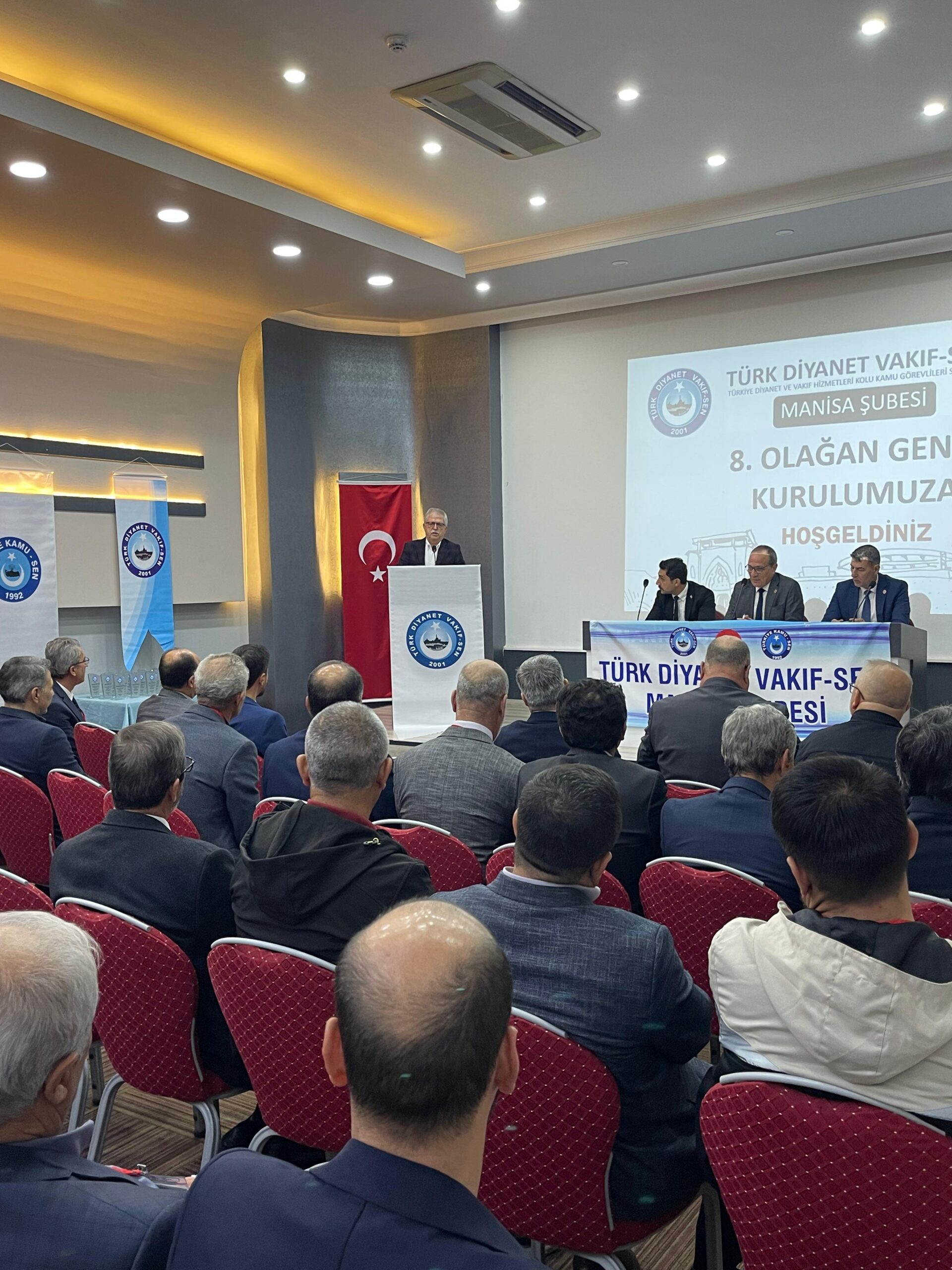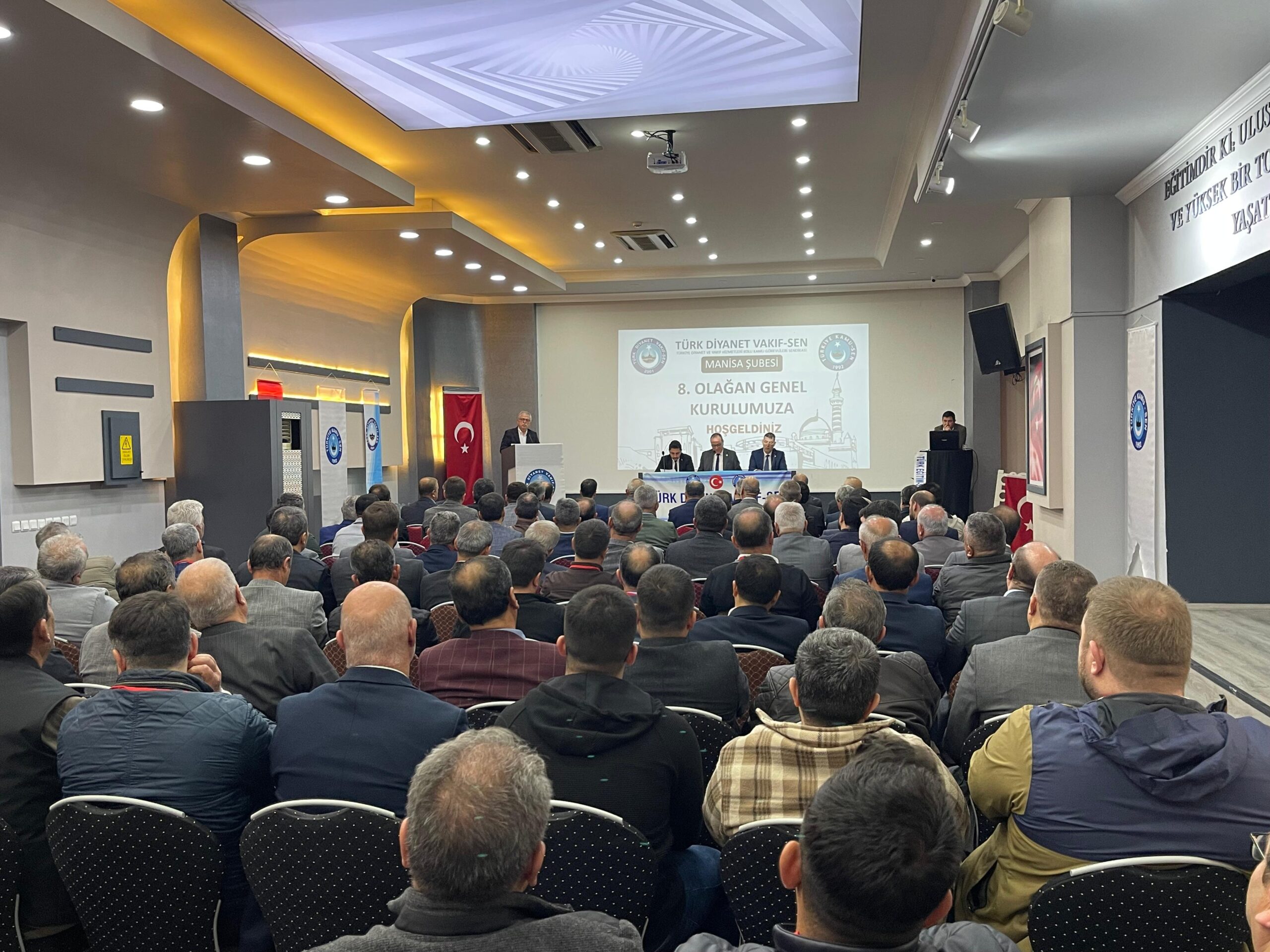 Türk Diyanet Vakıf-Sen Manisa Şube Başkanı İbrahim Durgut, genel kurula katılan herkese sendika adına teşekkür etti. Başkan Durgut, “Bize güç veren, bu mücadelenin her biri ayrı kahraman olan siz değerli üyelerimiz ve delegelerimiz, şubemizin teşkilat yöneticileri ve aramıza katılarak bize onur veren değerli dostlarımız, gönüldaşlarımız; Bizler, Bu mücadelede Haksızlığa dur demek için, inançlarımız, değerlerimiz, bayrağımız, ekmeğimiz, aşımız, çocuklarımız ve geleceğimiz diyerek "İnsanların hayırlısı insanlara faydalı olandır" diyerek, "Hakkın hatırı hiçbir hatıra feda edilmez" diyerek, bu mücadeleyi; 24 yıllık tecrübe ve temiz mazisiyle Türk Diyanet Vakıf-Sen çatısı altında hep birlikte, tek vücut olarak yürüttük ve yürütmeye devam edeceğiz. 24 yıl önce sendikamızın kurulmasına öncülük eden Kurucu Genel Başkanı merhum Tevfik Yüksel Beyi vefatının 20 yılında rahmet, şükran ve dualarla anıyoruz. Bu vesile ile başta merhum Tevfik Yüksel başkanımız olmak üzere, Sendikamızın kuruluşundan bugüne kadar ahirete irtihal etmiş bütün üyelerimize ve gönül dostlarımıza Yüce Allah’tan rahmet niyaz ediyorum. Bu kutlu görevde ömrünün en güzel yıllarını vermiş ve emekliye ayrılmış tüm üyelerimize de sağlık ve afiyetler diliyorum. Türk Diyanet Vakıf-Sen ve Türkiye Kamu-Sen kurulduğu günden itibaren, bizim ilkemiz önce ülkemiz anlayışıyla yola çıkmıştır. İlkeli, kararlı, sorumlu ve ahlaklı bir sendikal anlayışın öncüsü olarak, Diyanet çalışanlarımızın yanında olduk ve olmaya devam etmekteyiz. Bizlerin sendikal anlayışımızda bir mottomuz vardır. Biz öncelikle insanız, sonra Müslümanız, sonra Diyanet çalışanıyız, sonra Türk Diyanet Vakıf Senliyiz. Güzele, doğruya ve iyiliklere araç olarak gördüğümüz sendikal faaliyetleri, Diyanet çalışanı olduğumuzu unutmadan yerine getiriyoruz. Son dönemde kurumuzda güven ve aidiyet sorunları yaşanmaktadır. Maalesef ki cübbe ve sarık çok yoruldu. Kurum ne kadar güçlü ise, çalışan ne kadar mutlu ise bundan en fazla biz gurur duyarız. Kurulduğumuz günden itibaren Türk Diyanet Vakıf-Sen olarak büyük diyanet çatısını delmemek için yıpratmamak için usulünce üslubunca sendikal faaliyetler yapmaya çalıştık. Sendikal nezaket ortamı oluşturmak için elimizden geleni yapsakta maalesef diğer sendikalardan karşılık bulamadık. Bu dönem nezakette ısrarcı olmayacağımızın da bilinmesini isteriz” dedi.