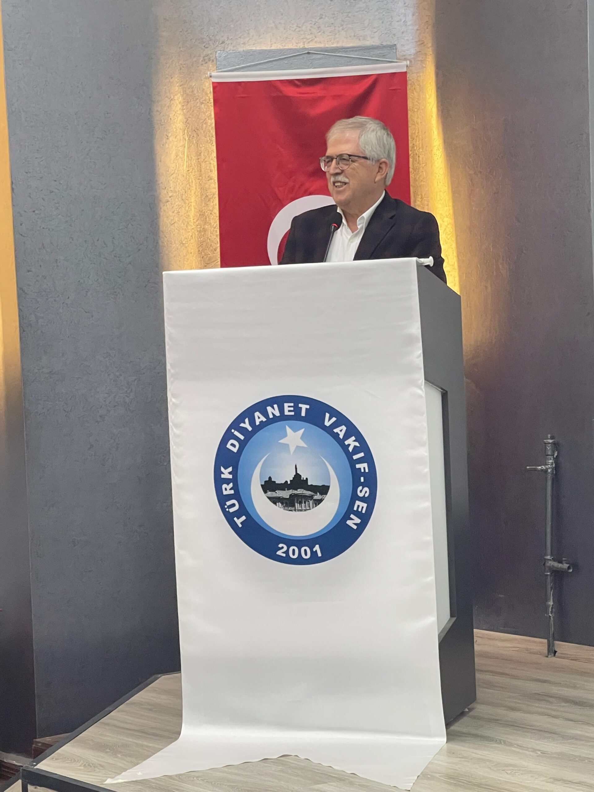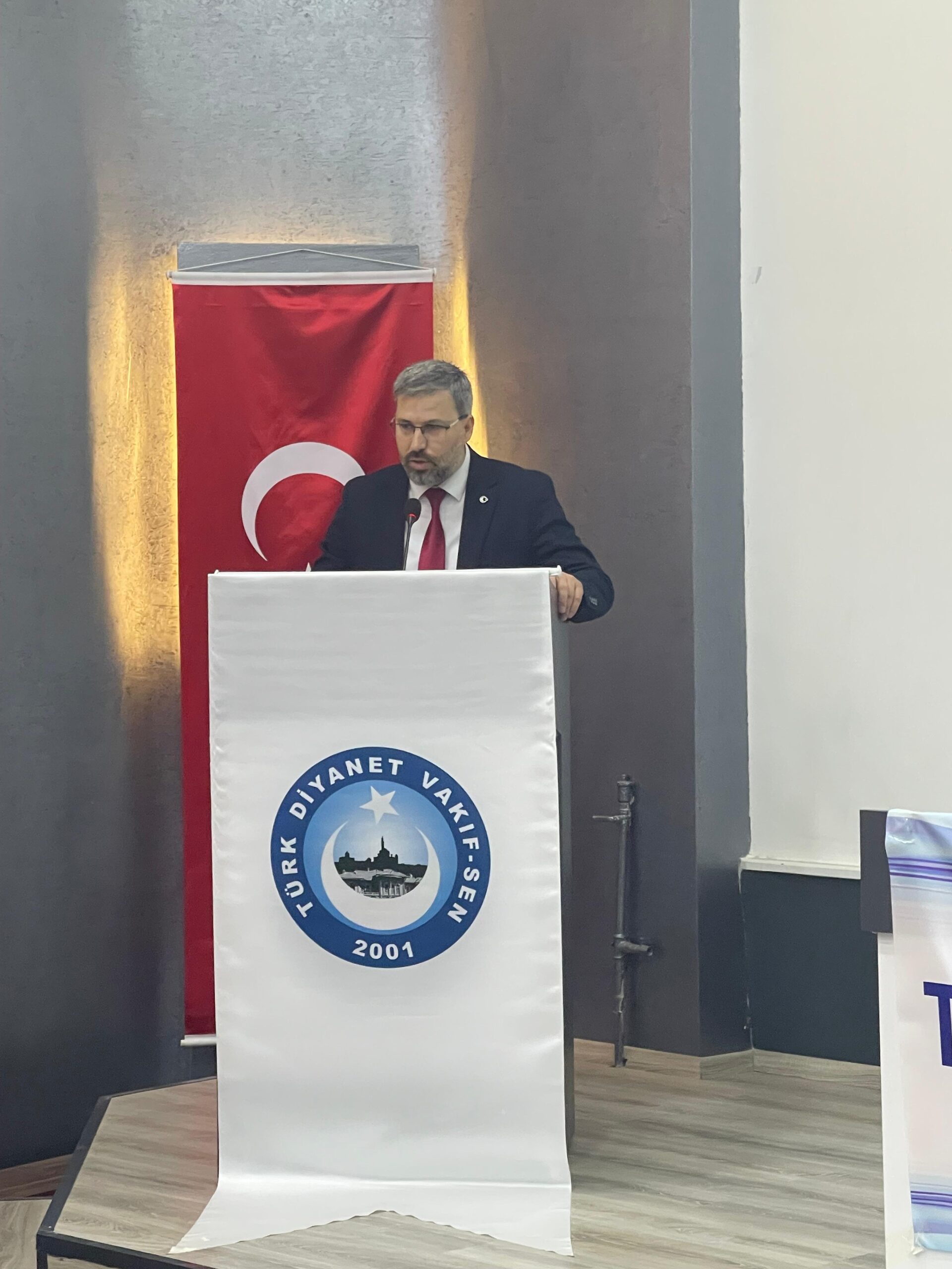 Başkan Durgut, “Vicdanla yoğrulmuş bir görev bilinciyle çıktık bu yola. İnancımızdan aldığımız ahlakla, emek mücadelemize yön verdik. Türk Diyanet Vakıf-Sen olarak, sadece bir sendika değil; değerlerin, hakların ve maneviyatın savunucusu olduk. Bizler için sendikacılık; yalnızca maaş pazarlığı değil, inançla yapılan bir hizmettir. Bu hizmetin temelinde, kul hakkına riayet, helal kazanca saygı ve kamu vicdanına sadakat vardır. Her adımımızda milletin değerlerini, din görevlilerimizin onurunu ve emeğini korumayı şiar edindik. Ahlaklı sendikacılık, günü kurtarmak değil; yarına iz bırakmaktır. Biz, rüzgâr nereden eserse oraya dönenlerden olmadık. Duruşumuzu, makamların değil; inancın, hakkın ve üyelerimizin sesleriyle belirledik. Bu kutlu mücadelede kararlılığımızdan hiç vazgeçmedik. Çünkü biz biliyoruz ki; hak aramak sabır, direnç ve samimiyet ister. Biz, din görevlilerimizin emeğini sadece istatistiklerde değil; dualarında, hizmet aşkında, mihraptaki sessiz fedakârlığında gördük. Türk Diyanet Vakıf-Sen olarak, dün olduğu gibi bugün de; ahlaklı duruşumuzdan, ilkeli mücadelemizden ve inançlı yürüyüşümüzden asla taviz vermeyeceğiz. Çünkü biz inanıyoruz: Sendikacılıkta ahlak varsa, mücadelede zafer kaçınılmazdır. Var olsun Türkiye Kamu-Sen var olsun Türk Diyanet Vakıf-Sen” diye konuştu.