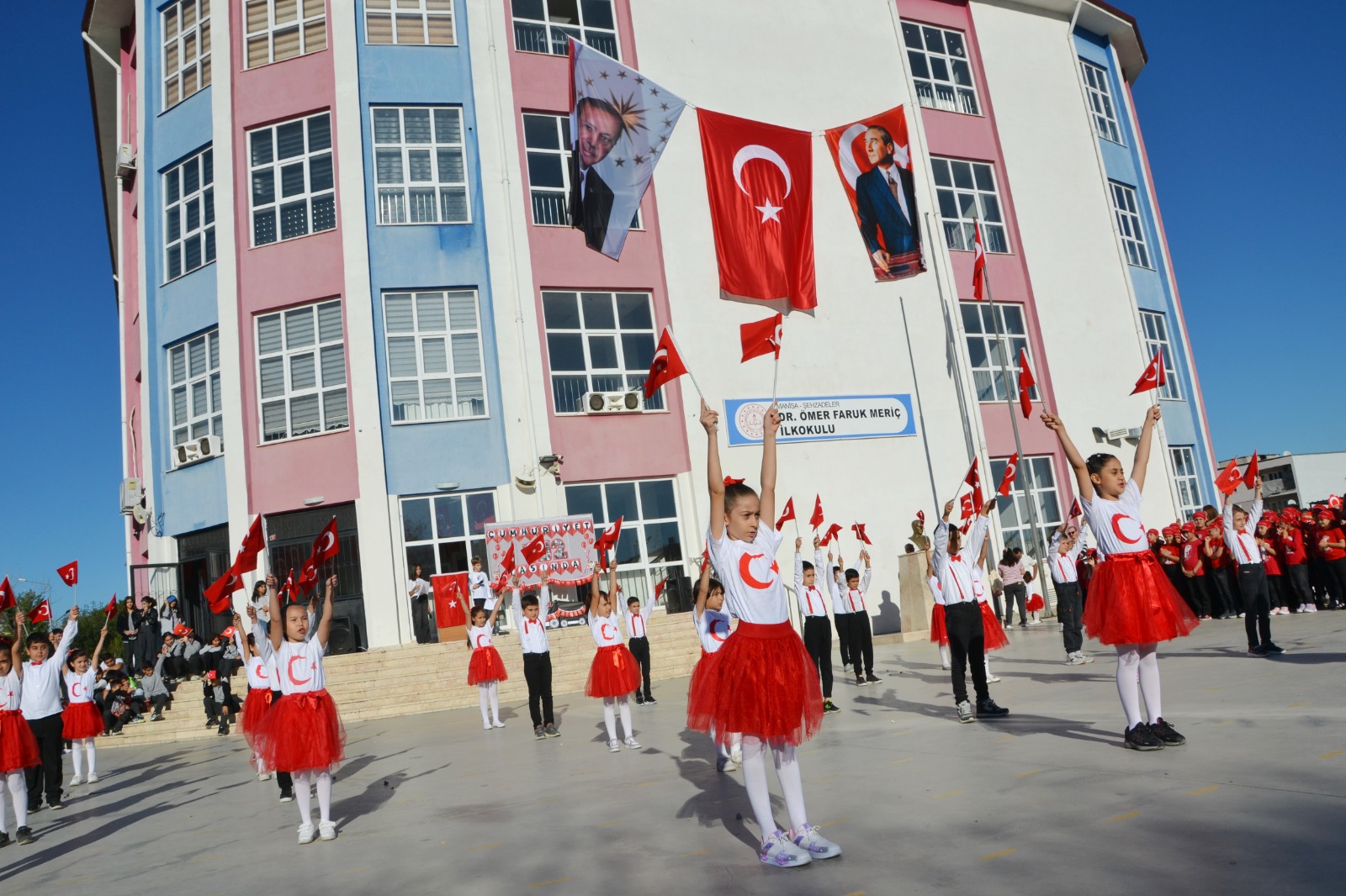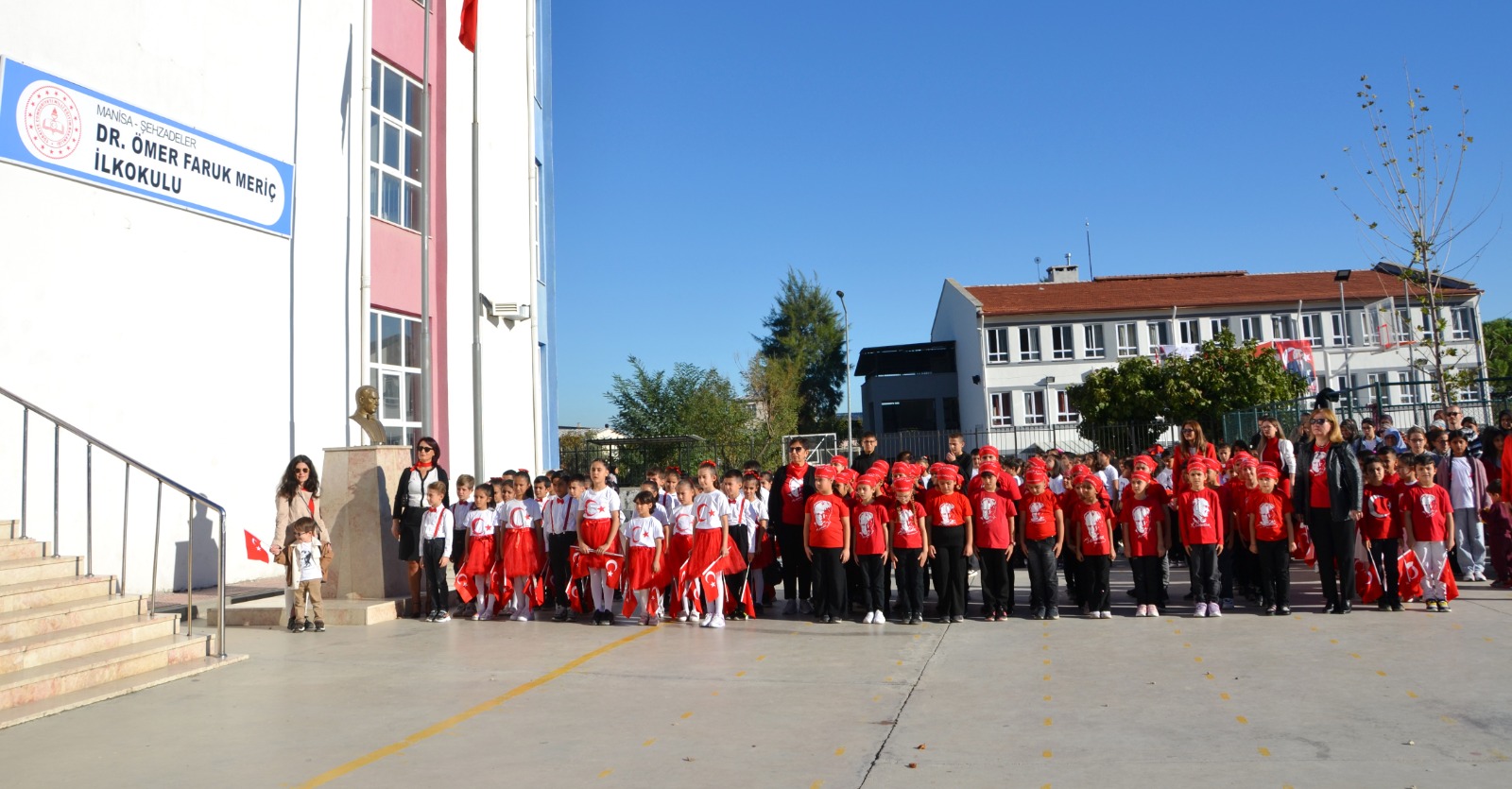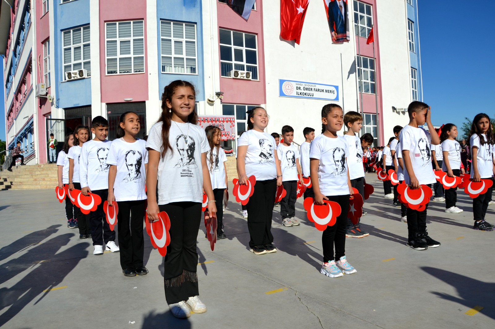 Manisa’nın Şehzadeler ilçesinde yer alan bu okulda, Cumhuriyet’in 102. yılı için özel bir tören düzenlendi. Törene Ahmet Bedevi Mahallesi Muhtarı Turan Şahin ve Dr. Ömer Faruk Meriç Ortaokulu Müdürü Serkan Doğan da katıldılar.