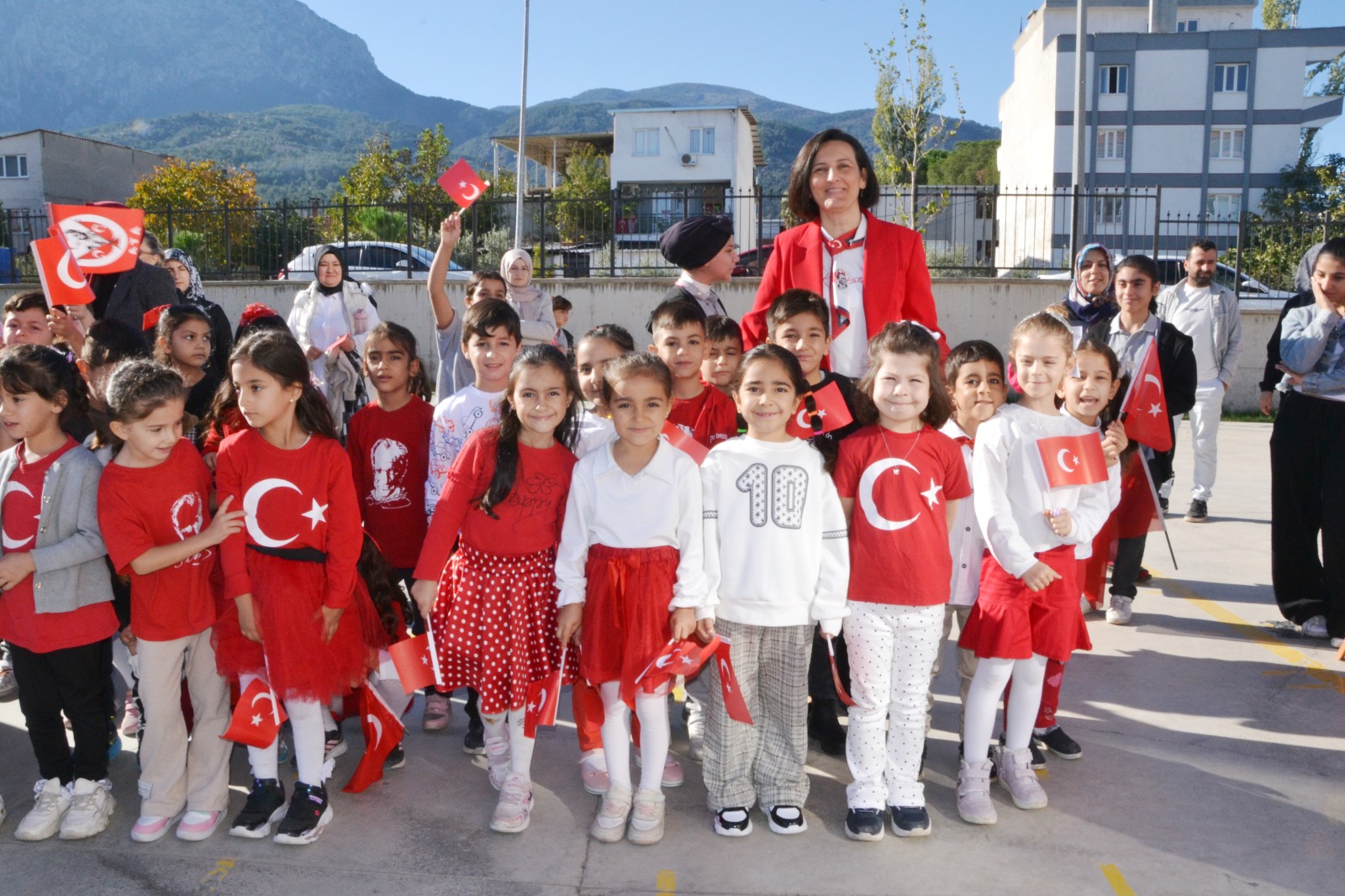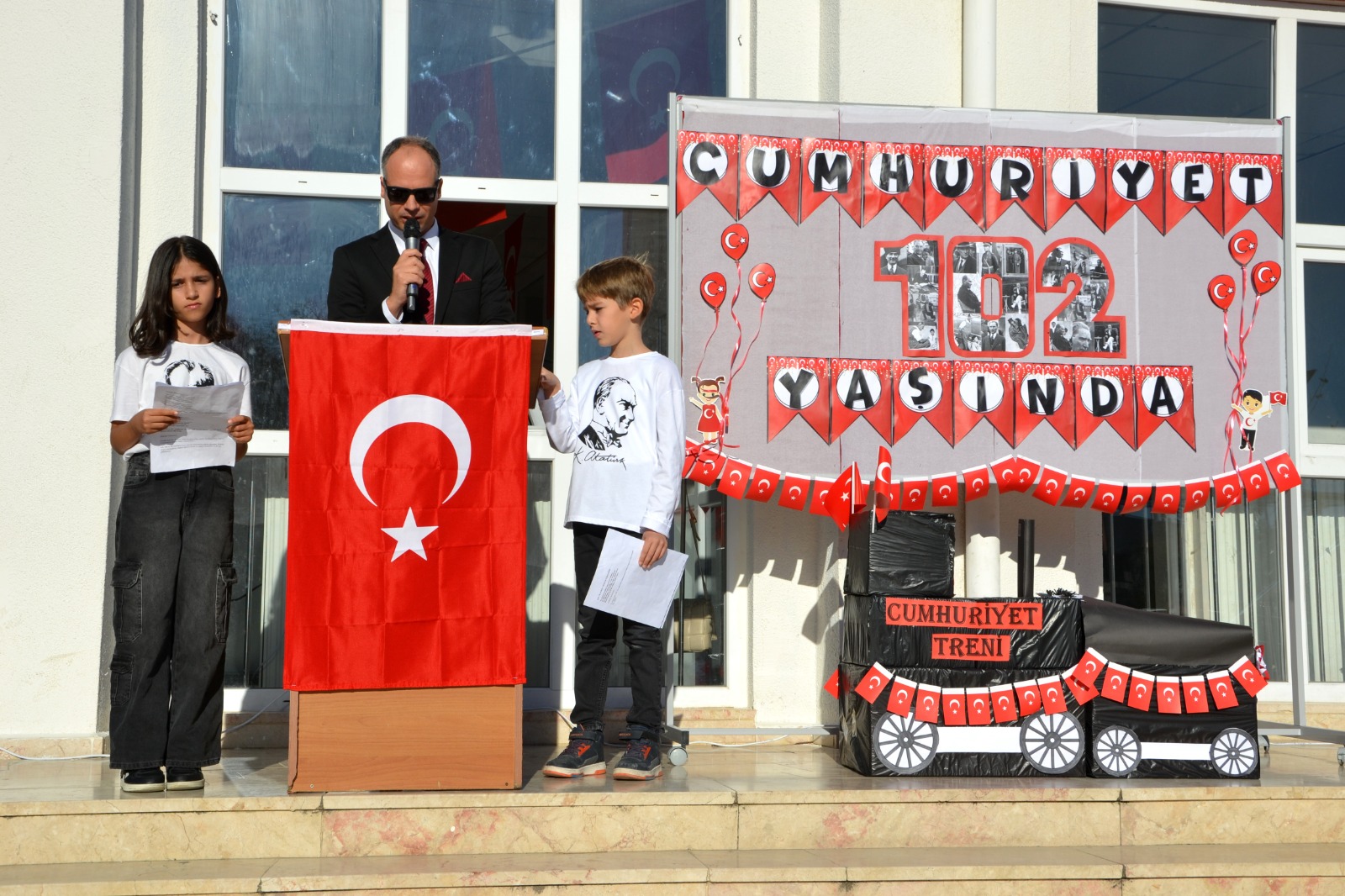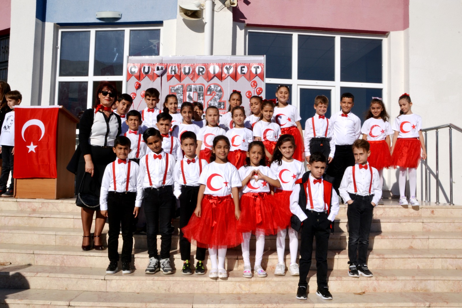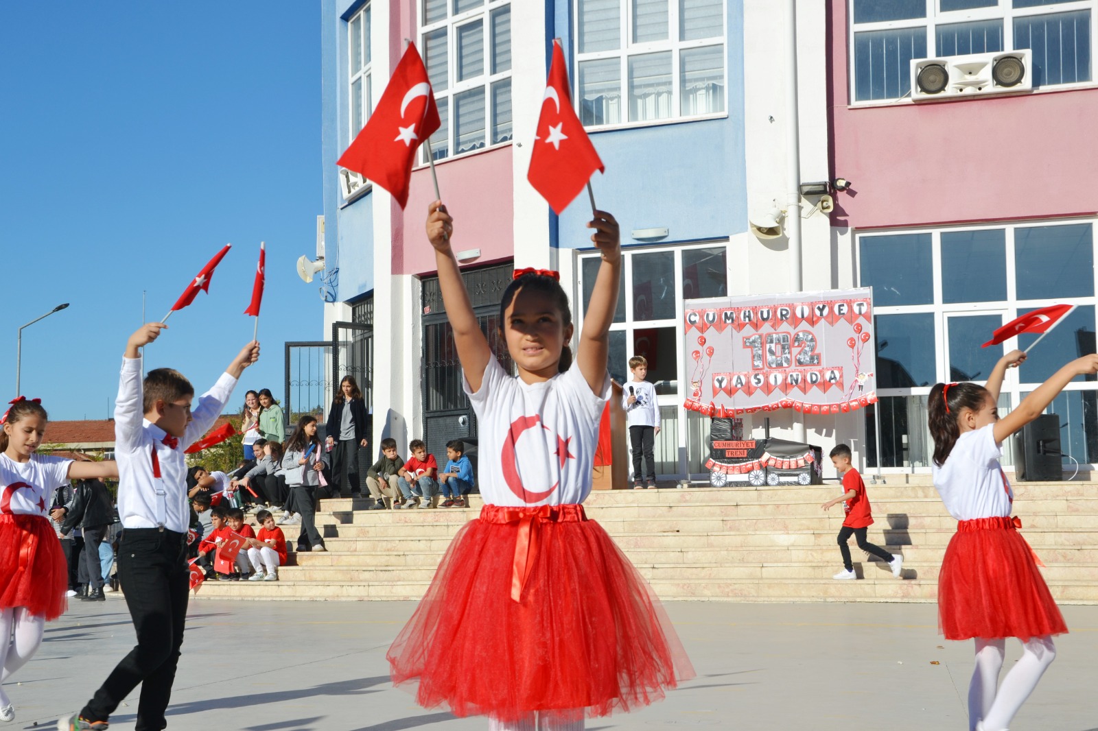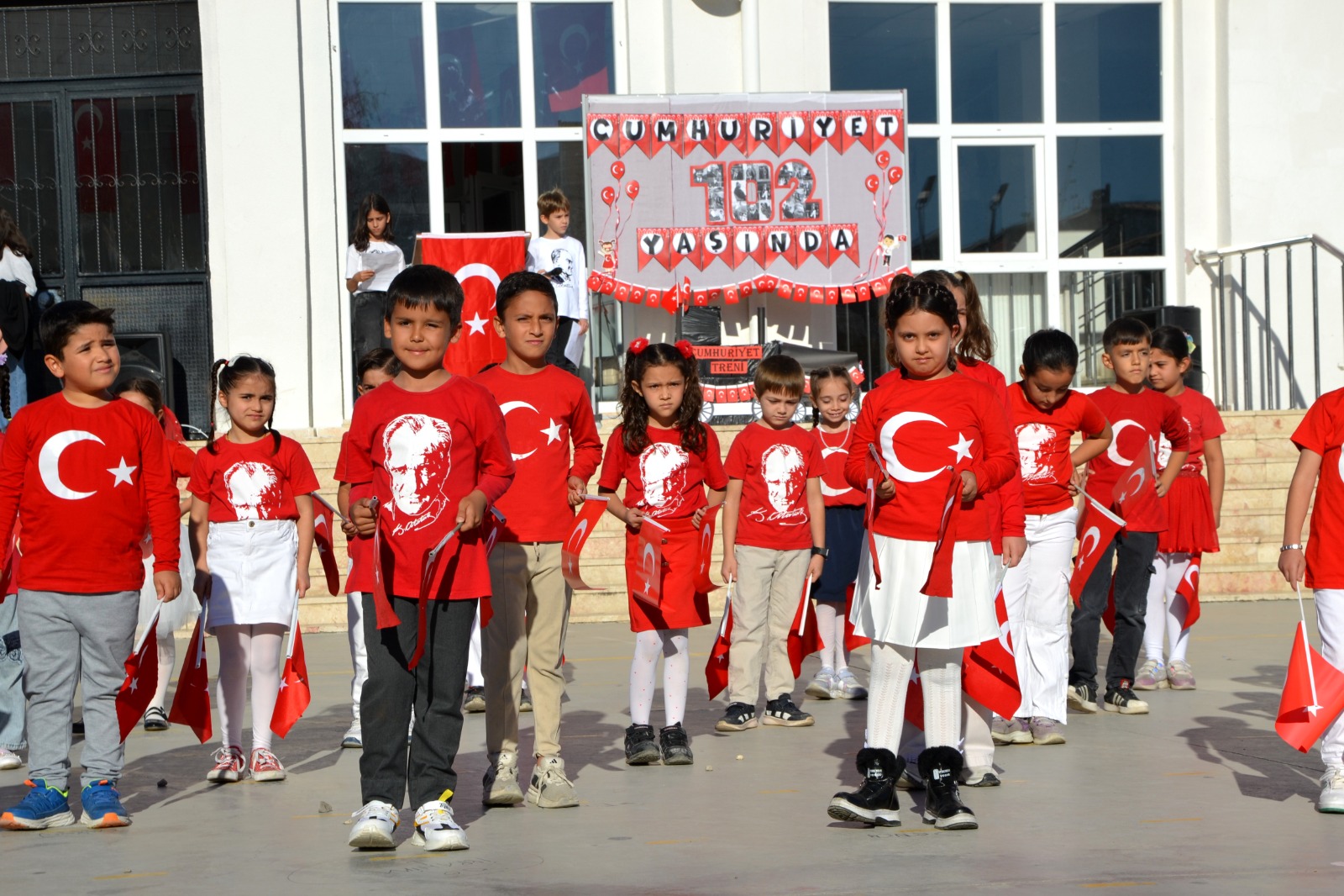 Etkinlik, saygı duruşu ve İstiklal Marşı ile başladı. Okul Müdürü Barış Karataş, Cumhuriyet'in 102. yılını kutlamanın büyük bir gurur kaynağı olduğunu belirterek, bu günün Türk milletinin tarihinde çok önemli bir yer tuttuğunu vurguladı. Öğrenciler ise kırmızı-beyaz kıyafetleriyle, ellerinde Türk bayraklarıyla çok güzel gösteriler sundular. Bu anlamlı kutlama, Cumhuriyet'in gücünü ve Türk milletinin birliğini bir kez daha gözler önüne serdi.