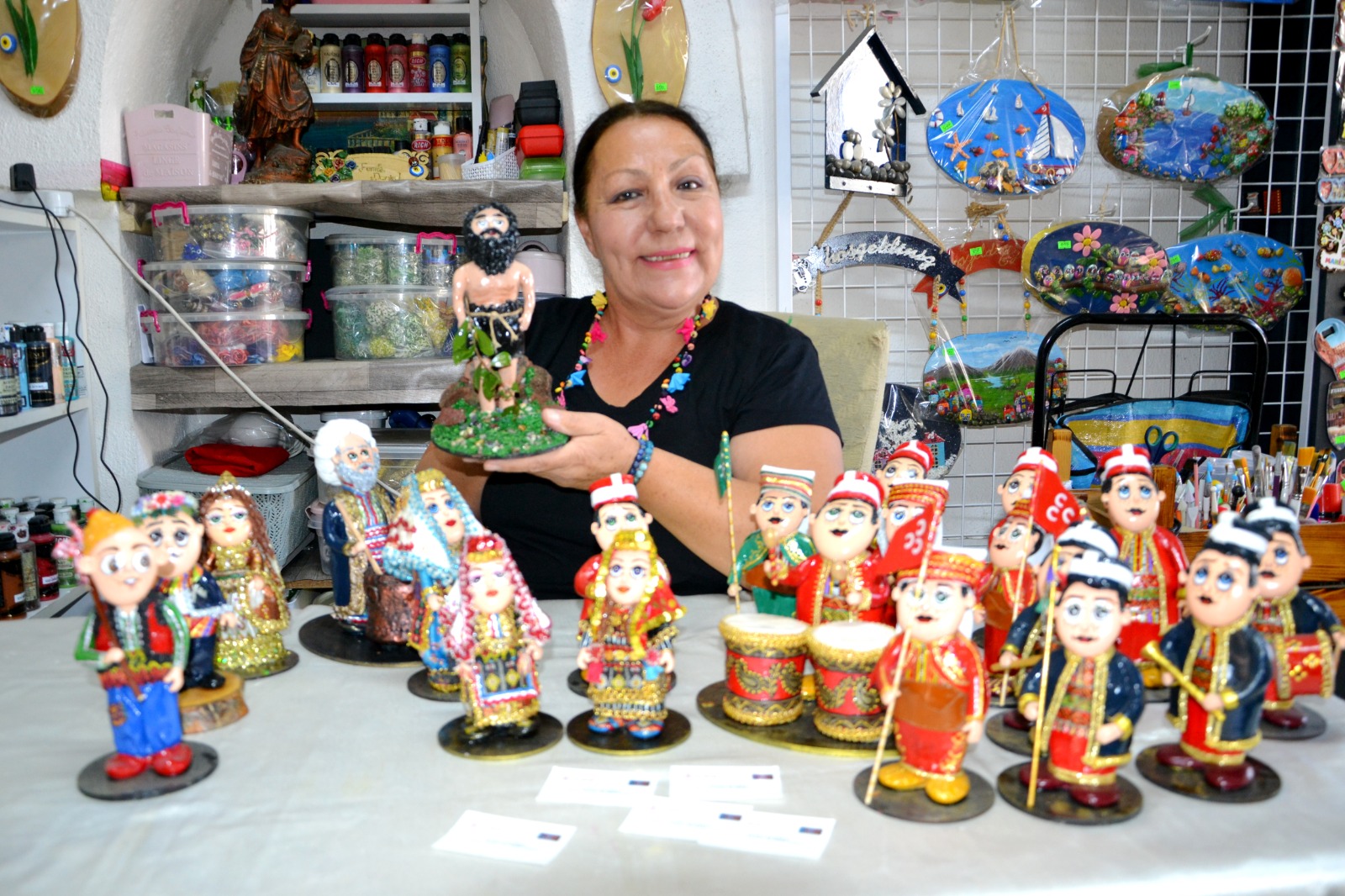 El sanatlarını gelecek nesillere aktarmak amacıyla ‘Ekmeğimiz Taştan Projesi’ni hayata geçirdiklerini vurgulayan Funda Demirel, “Biz böyle bir projeyi niye yaptık. Biz böyle bir projeyi aslında gelecek kuşaklara miras olsun diye yaptık. Çünkü baktığınızda gelinen noktada el sanatları artık hak ettiği değeri göremiyor. Gençler, çocuklar çok da yatkın değiller. Bir yandan da bu sanatı aktarmak gerekiyor, göstermek gerekiyor. İşte masal kahramanlarımız Keloğlan, Nasrettin Hoca ve buna benzer birçokları. Gençler, çocuklar bunları bilmiyor. Çok da vakıf değiller. Ya da Manisa’ya özgü Manisa Tarzanını bilmiyor. Ya da en basitinden bir Merkez Efendi ama bunun hikayesi çok da bilinmiyor. Folklor kıyafetlerimiz, mehter takımımız çok da bilinmiyor. Manisa yöresine özgü folklorik kıyafetler giyenlerimiz var. Bu kıyafetlerin özellikleri nelerdir. Biz bunları gelecek kuşaklara miras olsun diye canlandırdık taş bebeklerimizde. Bu taş bebeklerin bir müzesini yapmak istiyoruz. Manisa’ya bu müzeyi kazandırmak en büyük hedefimiz. Bunun için bütün kurum ve kuruluşlardan gerekli desteği bekliyoruz. Gelecek kuşaklara miras olsun. Taş bebeklerini yapmak için somut elimde belgelerin olması gerekiyor. Bu bağlamda sınava girdim. Büyük bir başarıyla sınavımı ilk seferde verdim. Bu sınavın sonucunda Kültür ve Turizm Bakanlığı Somut Olmayan Kültürel Miras Taşıyıcılığı unvanını aldım. Bu unvan doğrultusunda da bu müzeyi gerçekleştirmek istiyorum. Şuana kadar bunun tanıtımını yapabildik mi bir tek Kültür Yolu Festivalinde görücüye çıktılar. Şehzadeler Belediyesine projeyi teslim ettim, bekliyoruz. Bunların yapımı çok zor, çok meşakkatli ve zaman alana şeyler. Proje kapsamında tüm illerin yöresel bebeklerini yapmak istiyorum. Manisa’ya mal olmuş, tanınmış kişilerin taş bebeklerini yapmak istiyorum. Geleneksel masal karakterlerine hayat vermek istiyorum. Burası bir Şehzadeler Kenti. Şehzadeler’i, içlerinden çıkan padişahları yapmak istiyorum. Kaybolan meslek gruplarına yer vermek istiyorum. Biz aslında almak için değil vermek için, Manisa’ya bir şeyler katmak için destek bekliyorum” diye konuştu.