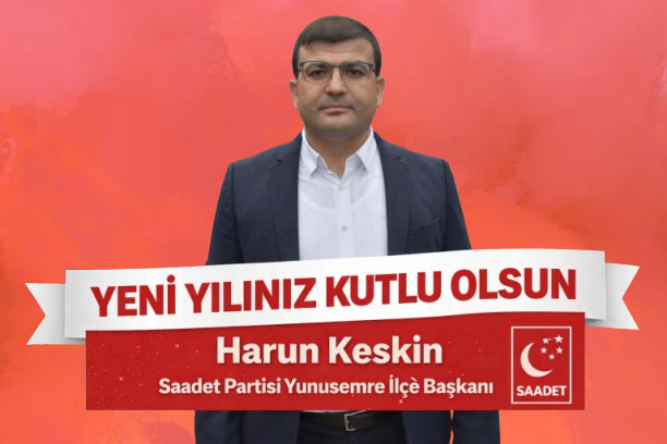 Saadet Partisi Yunusemre İlçe Başkanı Harun Keskin, 2025 yılının sona ermesi dolayısıyla bir yeni yıl mesajı yayımladı. Keskin, mesajında birlik, adalet ve toplumsal huzur vurgusu yaparak, 2026 yılının tüm insanlık için hayırlara vesile olmasını temenni etti.