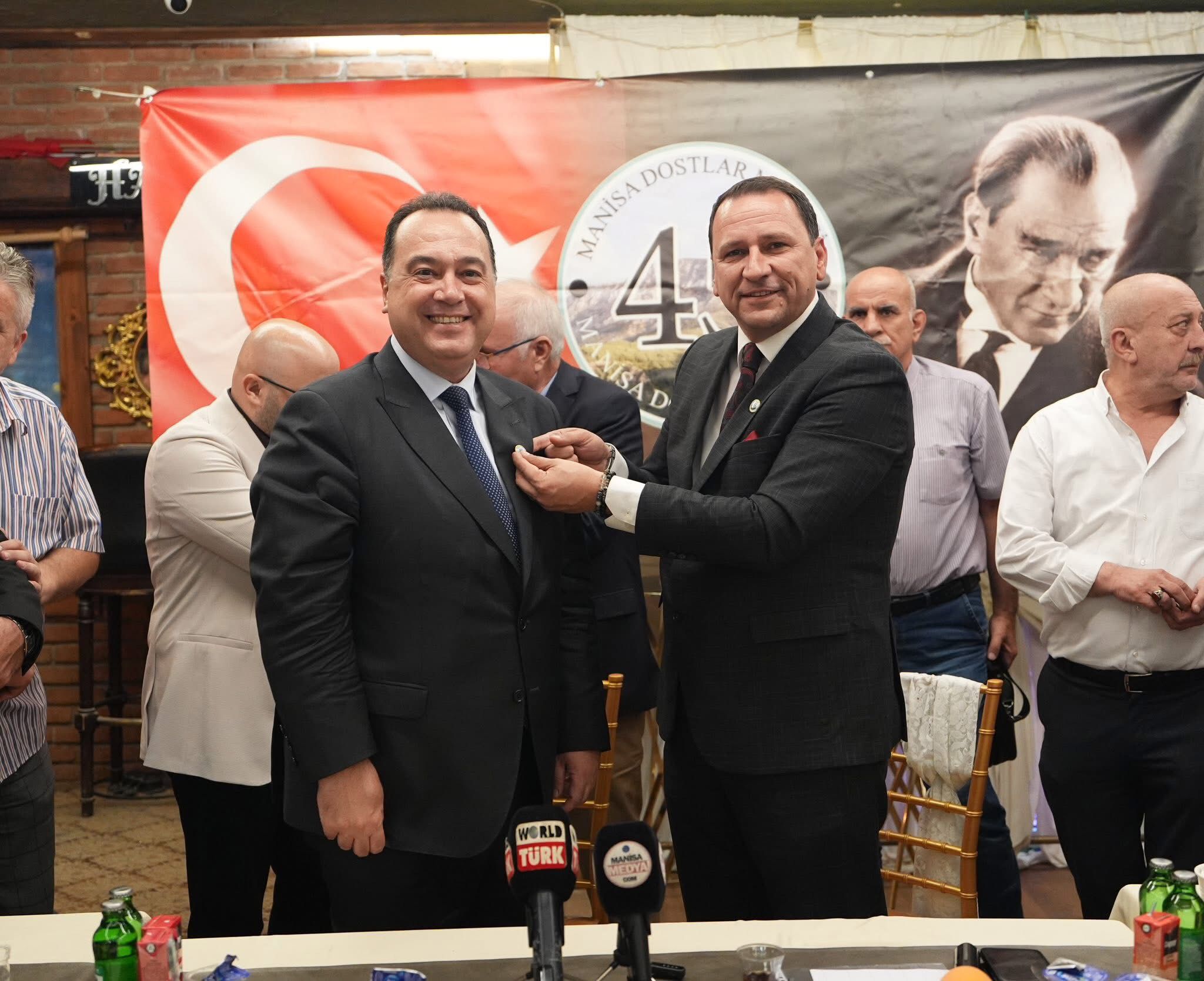 Yeni dönemin hayırlı olmasını dileyen Cihan Canuyar, Başkan Dutlulu’ya katılımı ve katkıları için teşekkür etti ve Manisa Dostlar Meclisi rozeti taktı.