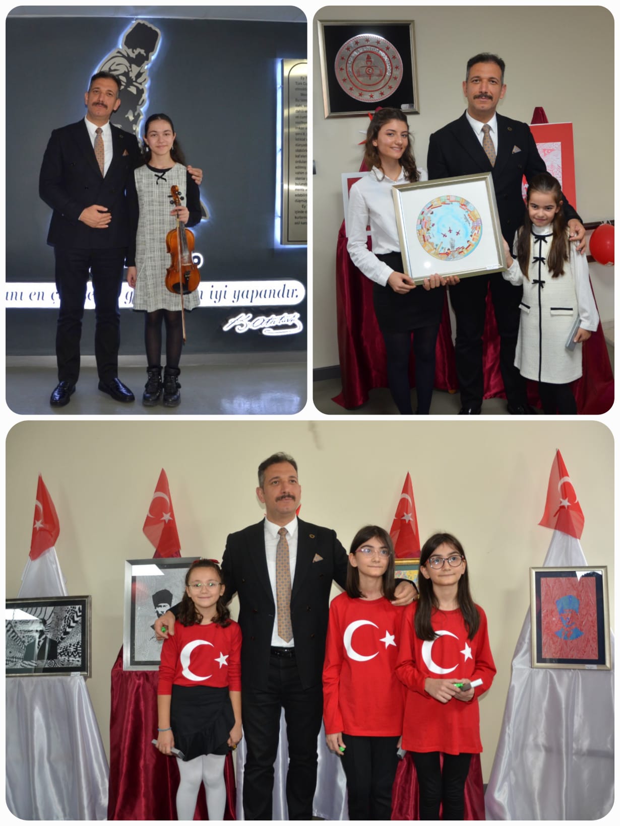 Manisa İl Millî Eğitim Müdürü Mehmet Uğurelli, Yunusemre Bilim ve Sanat Merkezi (BİLSEM) öğretmenleri ve öğrencileri tarafından hazırlanan “29 Ekim Türkiye Cumhuriyeti’nin Kuruluşunun 102. Yıldönümü” konulu müzik dinletisi ve resim sergisini ziyaret etti. Öğrencilerin büyük bir emek ve incelikle hazırladığı müzik dinletisi ve resim sergisi, katılımcılara hem duygu dolu hem de gurur veren anlar yaşattı. Program kapsamında seslendirilen Cumhuriyet temalı eserler, izleyiciler tarafından ilgi ve beğeniyle takip edildi. Cumhuriyetin değerlerinden, Atatürk ilke ve inkılaplarından, millî birlik ve beraberlik ruhundan ilham alınarak Türkiye Yüzyılı Maarif Modeline uygun olarak hazırlanan resimler ise sanatseverlerle buluştu. Ziyaretçiler, öğrencilerin sanatsal yaratıcılığına ve Cumhuriyet sevgisine yakından tanıklık etme imkânı buldu.