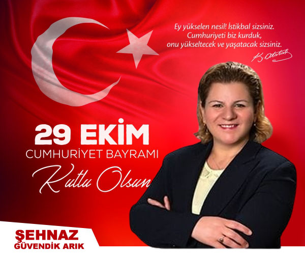 Şehnaz Güvendik Arık, Türkiye Cumhuriyeti’nin kuruluşunun 102. yılı dolayısıyla bir kutlama mesajı yayımlayarak Cumhuriyet Bayramı’nı coşkuyla kutladı. Arık, mesajında Cumhuriyetin halkın iradesiyle şekillenen en büyük kazanım olduğunu vurguladı.