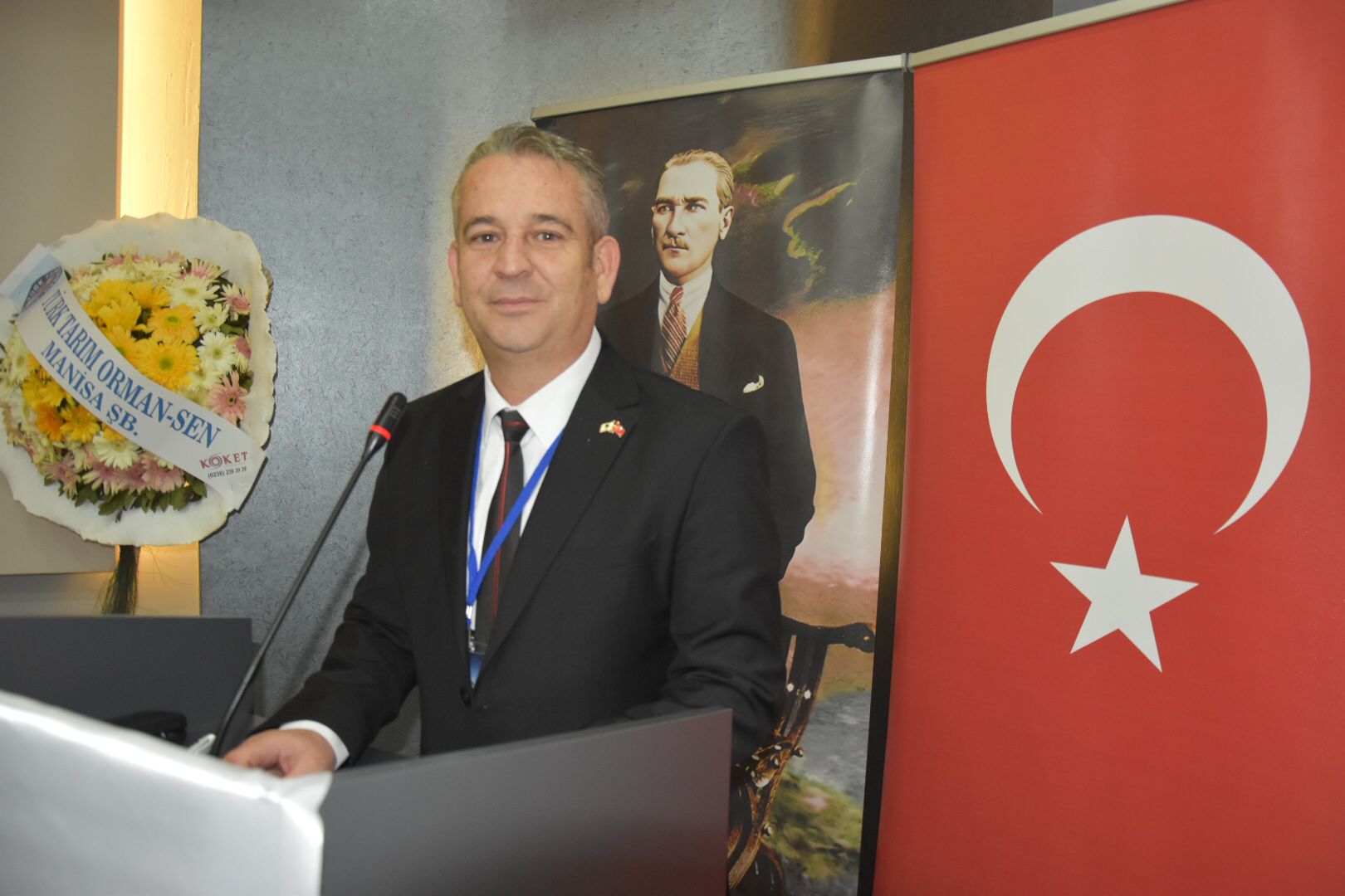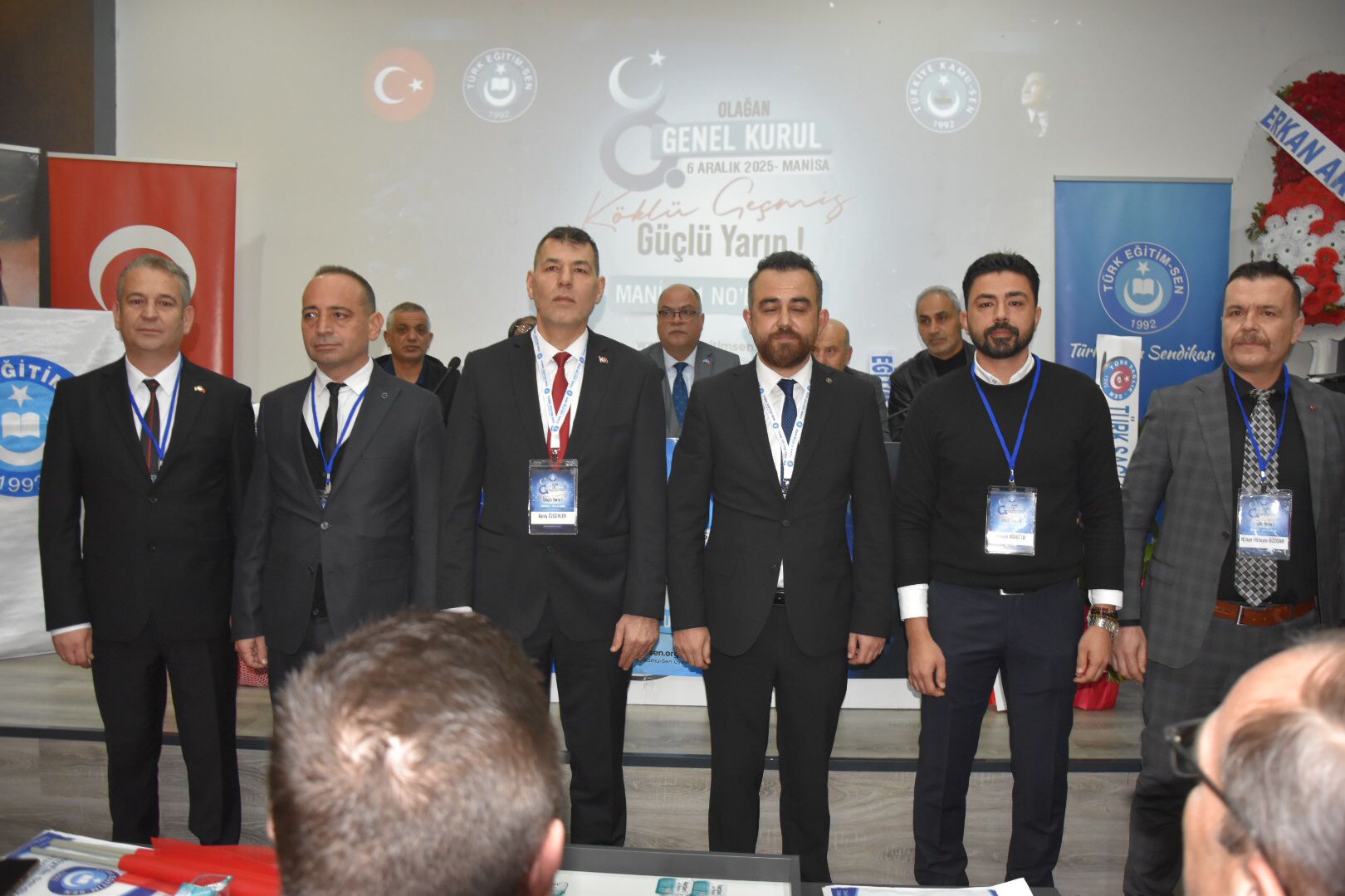 Türk Eğitim Sen olarak tarafsız ve ilkeli sendikacılık anlayışından hiçbir vazgeçmediklerini kaydeden Özgürler, “Geride bıraktığımız dönem, eğitim camiası için hem zorluklarla hem de kazanımlarla dolu bir süreç oldu. Biz, Türk Eğitim-Sen olarak, tarafsız ve ilkeli sendikacılık anlayışımızdan asla taviz vermedik. “Her dönemin adamı değil, her dönem adam olma” düsturuyla hareket ederek, üyelerimizin ve tüm eğitim çalışanlarının sesi olduk. Bizim sendikacılığımız, masada memuru satan değil, meydanlarda hakkı haykıran sendikacılıktır! Maaş pazarlıklarında memurun hakkını hiçe sayan, gerçek enflasyon karşısında eriyen ücret artışlarına imza atan yandaş sendikacılığın aksine, biz her zaman gerçekleri dile getirdik. “Takke düştü, kel göründü” misali, eğitim çalışanları kimin gerçekten mücadele ettiğini net bir şekilde görmüştür. Sözleşmeli öğretmenlik, kariyer basamakları, ek göstergeler, tayin ve nakil sorunları gibi temel konularda verdiğimiz hukuki ve eylemsel mücadeleler, sendikamızın dik duruşunun en somut örnekleridir. Geride kalan döneme baktığımızda, yönetim olarak, koltukta oturmayı değil, sahada olmayı tercih ettik. Sendikacılık, fotoğraf çekmek değil, eğitim çalışanının yarasını sarmaktır! Bizim sendikamız, her zaman hakkın ve haklının yanında dimdik durmuştur. Kıymetli Türk Eğitim-Sen’liler Eğitim camiasının temel sorunları, yetkili sendika masada memuru sattığı için çözümsüz kalmıştır. Artık bu oyuna bir son vermeliyiz. Vizyonumuz nettir: İlkeli sendikacılığın tek adresi olan Türk Eğitim-Sen’in, şubemizde ve genel merkezde yetkiyi yeniden ele alması için canla başla çalışacağız. Görevimiz, sandıkta gösterilen vekâleti, meydanlarda ve masada cesurca kullanmaktır. Ülküdaşlarım bizim davamız, büyük Türk milletinin geleceği olan çocuklarımızı yetiştiren eğitim çalışanının onur davasıdır. Bu kürsüden bir kez daha ilan ediyorum: Türk Eğitim-Sen var oldukça, eğitim çalışanının hakkını kimseye yedirmeyeceğiz. Dik duracağız, doğru konuşacağız ve sonuna kadar mücadele edeceğiz. Özellikle belirtmek isterim ki; Manisa’nın on yedi ilçesinin tamamında, yağmurda, çamurda, güneşte demeden okul okul, kurum kurum dolaşarak davamızı anlatan; fedakâr ilçe teşkilatımızın her bir yöneticisine, okullardaki kahraman iş yeri temsilcilerimize ve bizden desteğini esirgemeyen her bir üyemize sonsuz şükranlarımı sunuyorum. Sizler, bu mücadelenin isimsiz kahramanlarısınız! Bu kurulun düzenlenmesinde emeği geçen tüm yönetim kurulu arkadaşlarıma ve buraya gelerek sendikal iradesini ortaya koyan siz değerli delegelerimize yürekten teşekkür ediyorum. Kurulumuz hayırlı, mücadelemiz kutlu olsun! Konuşmamı ulu önder Atatürk’ün iki veciz sözü ile bitirmek istiyorum. “Benim hayatta yegâne fahrim, servetim Türklükten başka bir şey değildir.” Ne Mutlu Türk’üm Diyene!” diye konuştu. Konuşmaların ardından protokol üyeleri tarafından sendikanın kuruluşundan bu yana üyeliği devam edenlere plaket takdim edildi. Ardından seçime geçildi. Tek listeyle gerçekleşen genel kurulda Koray Özgürler yeniden başkanlığa seçildi.