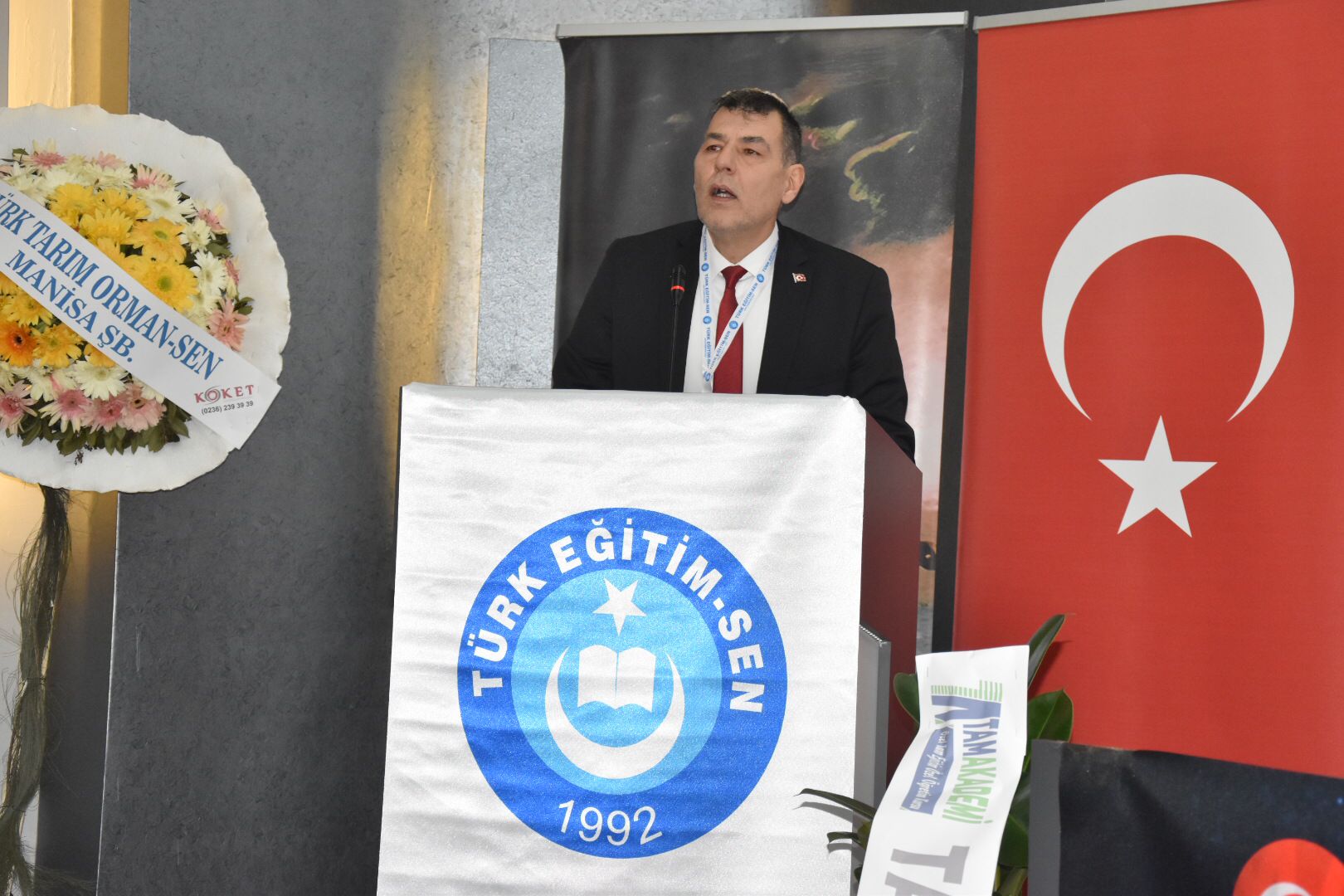 Türk Eğitim Sen Manisa 1 No’lu Şube Başkanı Koray Özgürler, Türk eğitim çalışanlarının gür sesi, Türk Eğitim-Sen’inin 8.Olağan Şube Kurulu’na katılan herkese teşekkür etti. Başkan Özgürler, “Bu vatan uğruna canlarını feda eden aziz şehitlerimizi, Gazi Mustafa Kemal Atatürk ve silah arkadaşlarını, Başöğretmenimizi ve ebediyete irtihal etmiş tüm sendika büyüklerimizi rahmet ve minnetle anıyor, bu kutlu çatıyı kuran ve yaşatan tüm büyüklerimize şükranlarımı sunuyorum. Bugün burada sadece bir sendikal toplantı için değil, Türkiye Cumhuriyeti’nin kurucusu Başöğretmenimiz Gazi Mustafa Kemal Atatürk’ün çizdiği yolda, önce ülkemiz diyerek, çıktığımız kutlu yolda, eğitim ordumuzun karşılaştığı sorunlara çözüm bulmak, geçmişi değerlendirmek, geleceği planlamak için bir aradayız” dedi.