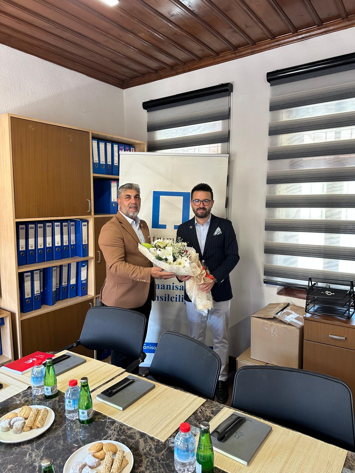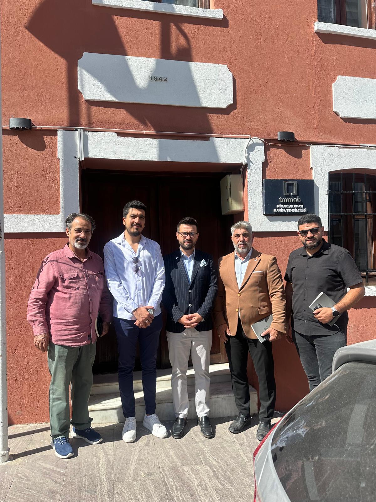 Yeniden Refah Partisi Yunus Emre İlçe Başkanı Mehmet Baki Çelik ve beraberindeki heyet, Manisa Mimarlar Odası Başkanı Mahir Gülhan'ı makamında ziyaret etti.